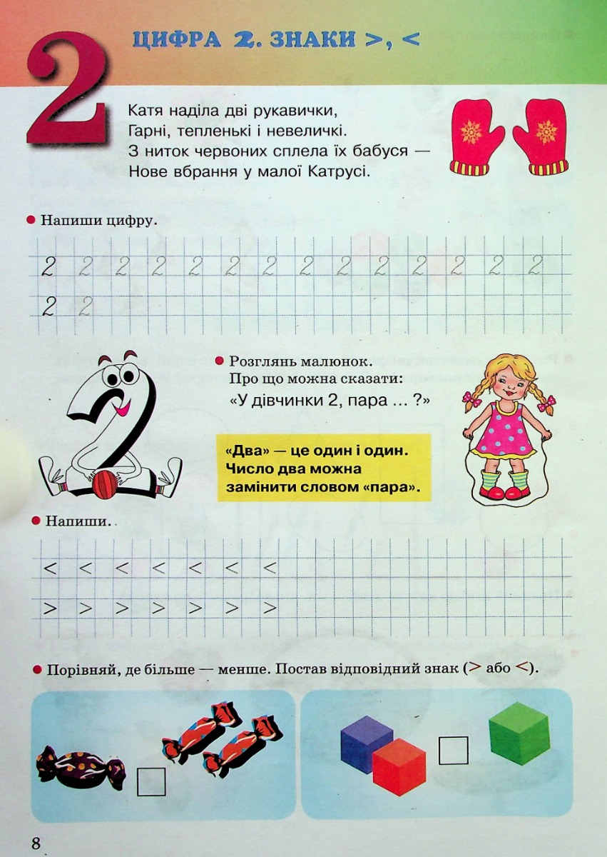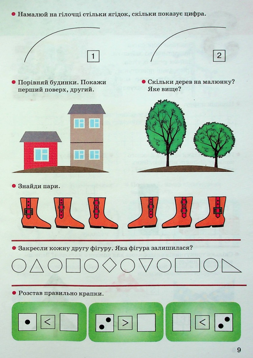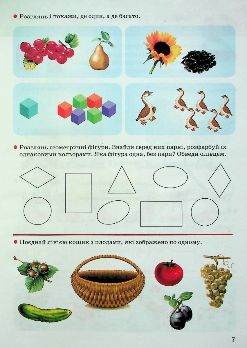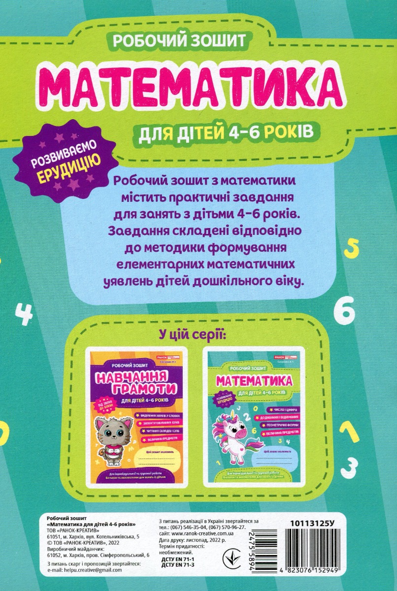 Зошит для індивідуальної та групової роботи. У цих зошитах ми пропонуємо різноманітні вправи, які допоможуть дітям опанувати основи грамоти і математики. Посильні для дошкільника завдання чергуються з грою та практичною діяльністю. Навчання ведеться за класичним методом: від простого до складнішого. У кінці зошита подано практичні вправи для кращого засвоєння вивченого.